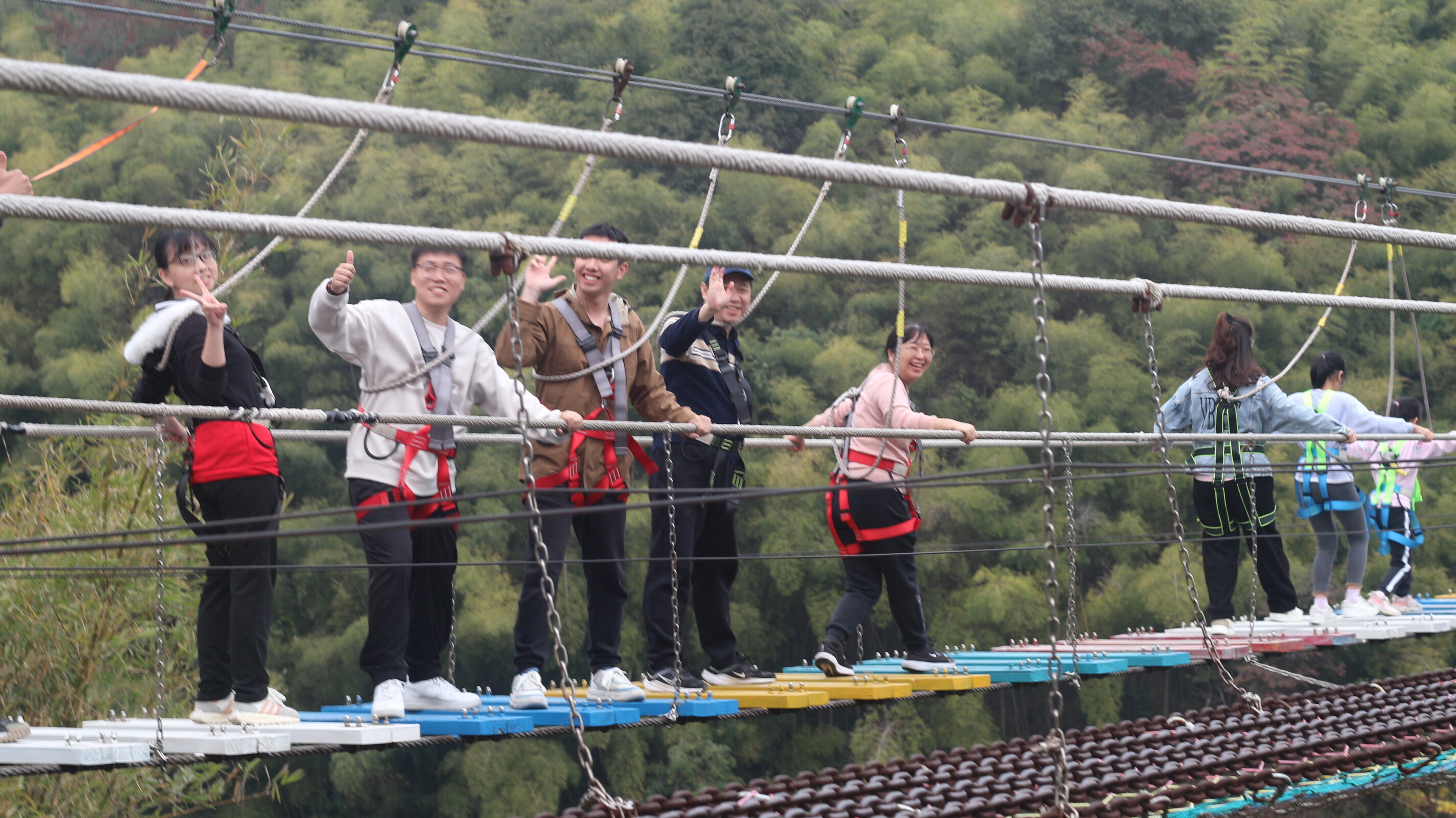 接着,大家挑战了刺激的滑索、高空桥等项目,体验了紧张刺激的瞬间。