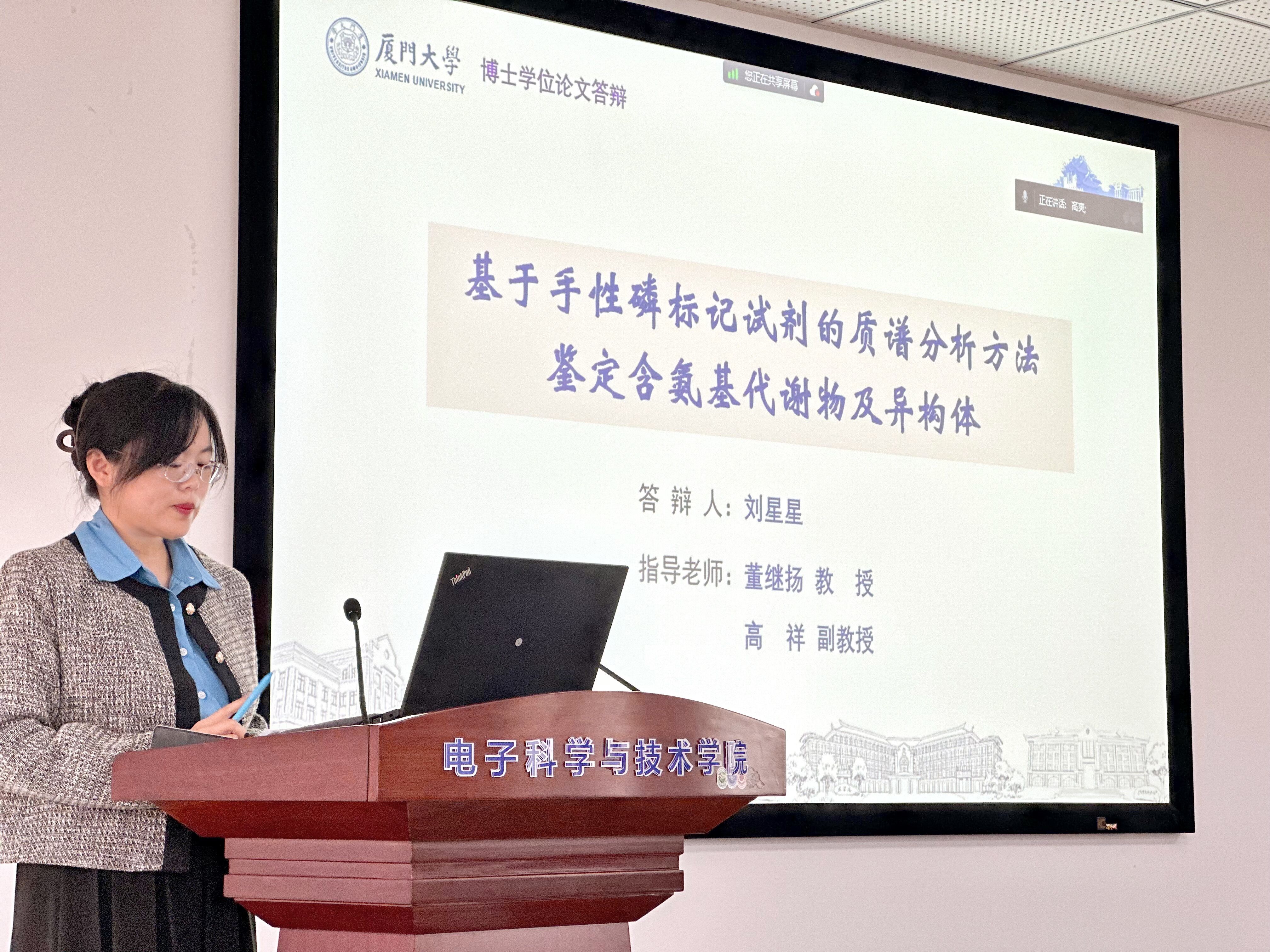 2023年12月14日上午9点,刘星星博士学位论文答辩在厦门大学翔安校区南存钿楼A513室举行。本次答辩邀请了中国医学科学院的贺玖明研究员作为答辩委员会主席,以及第三海洋研究所的杨献文研究员、华侨大学医学院李三暑教授、厦门大学生科院林树海教授、厦门大学药学院吴彩胜教授作为答辩委员会的成员。答辩秘书由许晶晶老师担任。